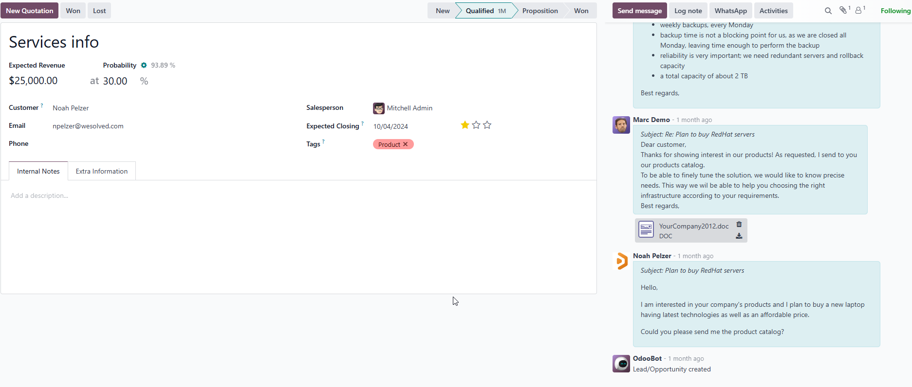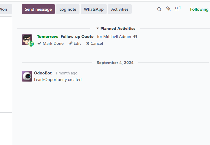 Organiseer gesprekken, vergaderingen, e-mails of offertes en Odoo plant automatisch de volgende activiteit volgens je verkoopproces.