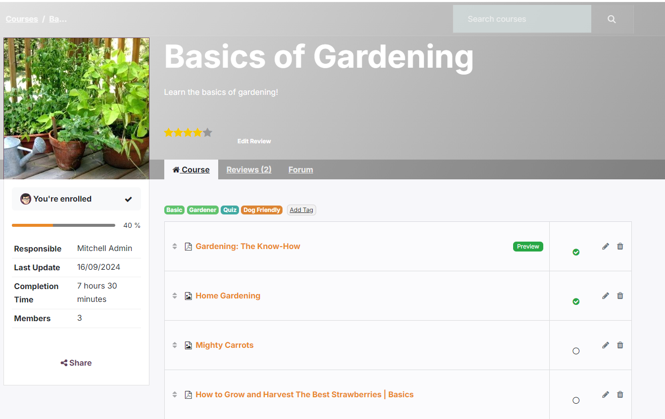 Odoo eLearning biedt een eenvoudig Learning Management Systeem op maat voor zowel studenten als docenten. Je kunt verschillende materialen uploaden, de voortgang van studenten bijhouden en ervoor zorgen dat hun betrokkenheid altijd hoog blijft.