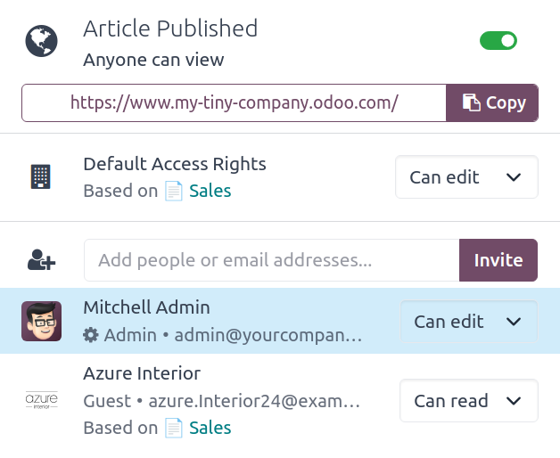 Met Odoo Knowledge kun je alle essentiële gegevens voor je organisatie verzamelen, effectief samenwerken met je team en ze openen vanuit elke Odoo-toepassing.