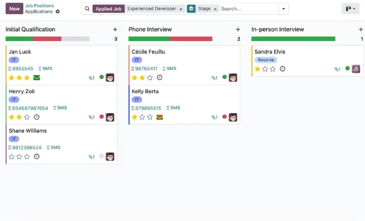 Odoo Recruitment stroomlijnt je wervingsproces, zodat je snel en efficiënt de ideale kandidaten voor jouw organisatie kunt vinden.