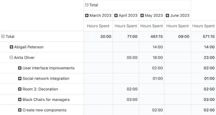 Blijf winstgevend. Krijg een duidelijk overzicht van je factureerbare uren per teamlid, project, taak en factureringstype.